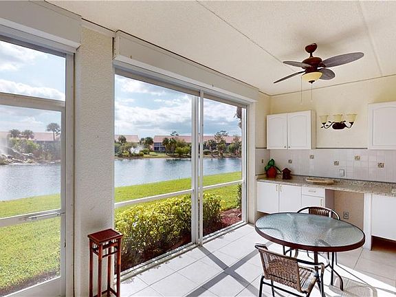 This beautifully refreshed condo features a pristine interior with freshly painted walls and meticulously steam-cleaned floors, creating a warm and inviting atmosphere. A brand-new air conditioning unit and water heater installed in November 2024 enhance modern comfort and efficiency. Conveniently located on the main floor, this unit offers easy accessibility. With breathtaking southwestern views of a picturesque lake, complemented by a serene water feature, it provides an ideal backdrop for captivating sunsets from your lanai. Designed for relaxation, the lanai seamlessly connects your living space to nature through fully pocketing glass doors that invite fresh air and sunlight. Electric hurricane shutters offer added peace of mind by providing protection during stormy weather. Just a short stroll away, you can indulge in a wealth of amenities, including a resort-style swimming pool, a lap pool, and a leisurely 600-foot lazy river, perfect for soaking up the sun. Sports enthusiasts will appreciate the nearby tennis, pickleball, and bocce ball courts. Located within the well-maintained Phase 1 of the community, the building has seen recent enhancements, including newly painted railings and steps, updated gutters, and a recently replaced roof, all completed in the last five years without any additional assessments. Last summer, the lazy river pool and volcano features were exquisitely renovated, again without imposing new assessments. Step inside and feel the pride of ownership that radiates throughout this remarkable unit. Opportunities like this are rare and truly inspiring!