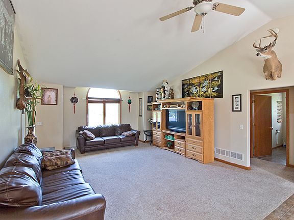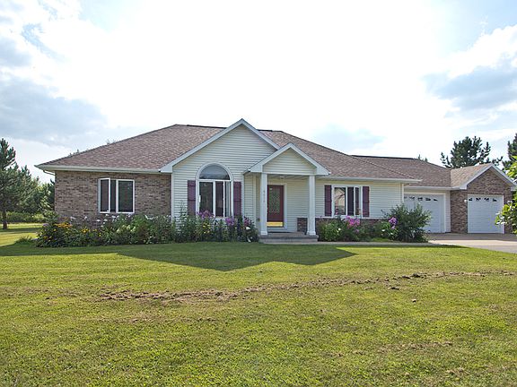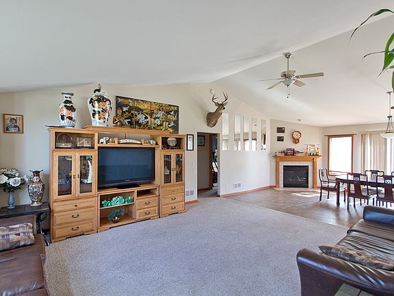 Caribou Acre Ranch Home for sale with over 2200 Square feet. Three bedrooms including Master Suite with master bathroom and walk in closet. Split bedroom plan and open concept. Dining room area features gas fireplace and patio doors walking out to the backyard deck and patio areas. Home sits on just under an acre of land with some trees for privacy and seclusion. Large living room opens to dinette area and kitchen. Kitchen features center eat-at island and stainless steel appliances.