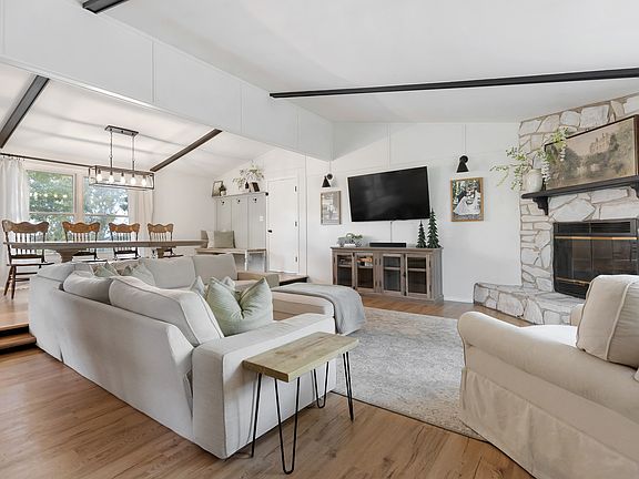 Stone fireplaceFull open basementFirst floor laundryAnimal fencingRefreshed gravel driveMaster bedroom entertainment wallMaster bath update