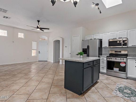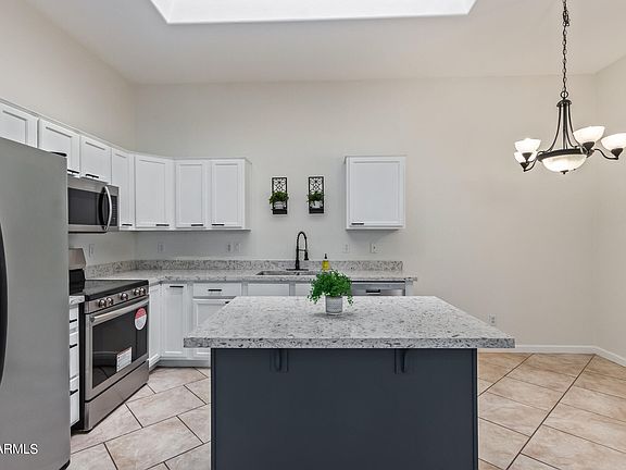 UPDATED & VERY NICE single level townhome in the GATED community of Silverstone by DR Horton. Shows like a model home! PRIME location in Top-Notch Mesa school district! Newer High Seer AC, & Water Heater & 20'' diagonal TILE floors throughout home too, no carpet! Interior just UPDATED beautifully with STAINLESS appliances, QUARTZ counters, fresh paint & MORE! Fresh exterior paint a few years ago. Great floor plan with open kitchen with skylight overlooking the big great room, split living for guests, good sized private BACKYARD with covered patio to enjoy! 2 car garage, NEW epoxy floor, front loader washer & dryer. A GREAT community with pool & playground to enjoy! You will be HAPPY you found this home! Buyer couldn't qualify for a loan, so now an opportunity for you to make a move!