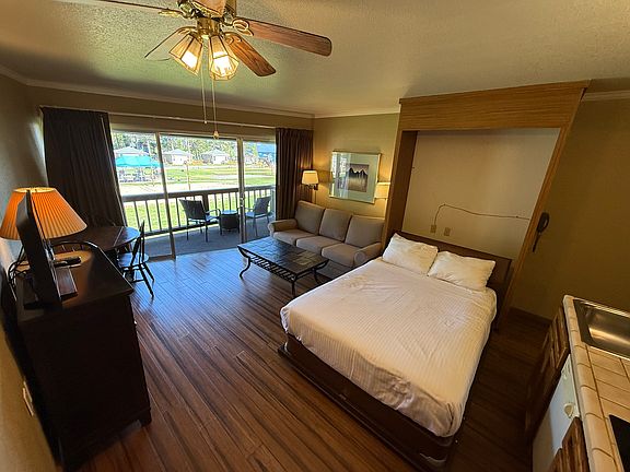 Private beachLakefront resort propertyStudio unitsCondo style unitsPatios overlooking the lakeHot tub