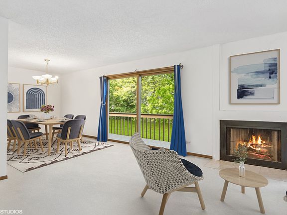 Secluded in a cul-de-sac, this wooded lot offers tranquil surroundings with convenient access to bike and walking paths. Embrace the excellence of Columbia Homes' award-winning model boasting five bedrooms, three full baths, and two fireplaces. Enjoy the luxury of upgraded plush carpeting, spacious walk-in closets, and a lower-level ideal for in-law or guest accommodations. The family room features sliding glass doors opening to the backyard, providing picturesque views, complemented by a large deck for outdoor relaxation, all within the highly coveted Naperville 203 school district. Available now!