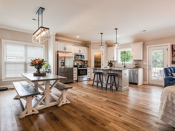 This gorgeous 1.5 story, 4-bedroom, 3-bath home features 1891 square feet with an open floor plan, split bedrooms, and a first-floor main suite. Main bath features a shower, a separate water closet, and two sinks. Large kitchen with granite counter tops and large kitchen island; separate mudroom with built-ins. The great room, kitchen, dining area, laundry room, and baths have durable PVC plank flooring, which looks like hardwood, and it’s waterproof and scratch-resistant. The loft area provides has 292 finished square feet, with the 4th bedroom and 3rd bath. This home also has an attached 2-car garage, and a patio on the back. Nice Fenced in back yard! SMART ENERGY RATED. Square feet is approximate $150 yearly HOA dues