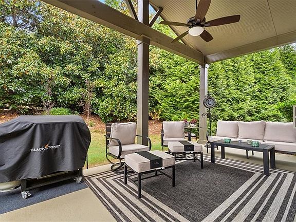 Discover the charm and convenience of this executive brick 4 bedroom, 2 bath home nestled in the highly sought-after Reserve section of West Oaks subdivision. This residence, offering a desirable single-level floor plan with the exception of one versatile room located upstairs—perfect as a private office, media room, or a dedicated guest suite—is designed for sophisticated, effortless living. Upon entering, you are immediately welcomed by high-end finishes, including the gleaming hardwood floors that span all the main living areas and the expansive primary bedroom suite, adding warmth and durability. For formal gatherings, the separate dining room presents an elegant space defined by a beautiful coffered ceiling. Additionally, a private office on the main floor, secured by chic French doors, provides a quiet, dedicated area for remote work or study. The heart of the home is a gourmet kitchen that truly impresses. It boasts abundant, crisp white cabinetry with under cabinet lighting, expansive granite countertops, and a full suite of premium stainless steel appliances, including essential double ovens and the refrigerator. This open-concept kitchen provides a wonderful view to the spacious family room, which centers around a cozy fireplace and leads directly out to the welcoming covered back patio, making seamless indoor-outdoor entertaining a reality. A significant, lifestyle-enhancing benefit of this West Oaks location is the included landscape maintenance, which completely frees you from weekend yard work. Enjoy the amazing amenities including a lap pool for your morning swim, pickleball, tennis, and bocce ball courts for friendly competition as well as a clubhouse for social gatherings. Close to GA 400, Vickery Village, Midway Park, The Greenway, Fowler Park, Halcyon, Northside Forsyth Hospital, restaurants, shopping and more!