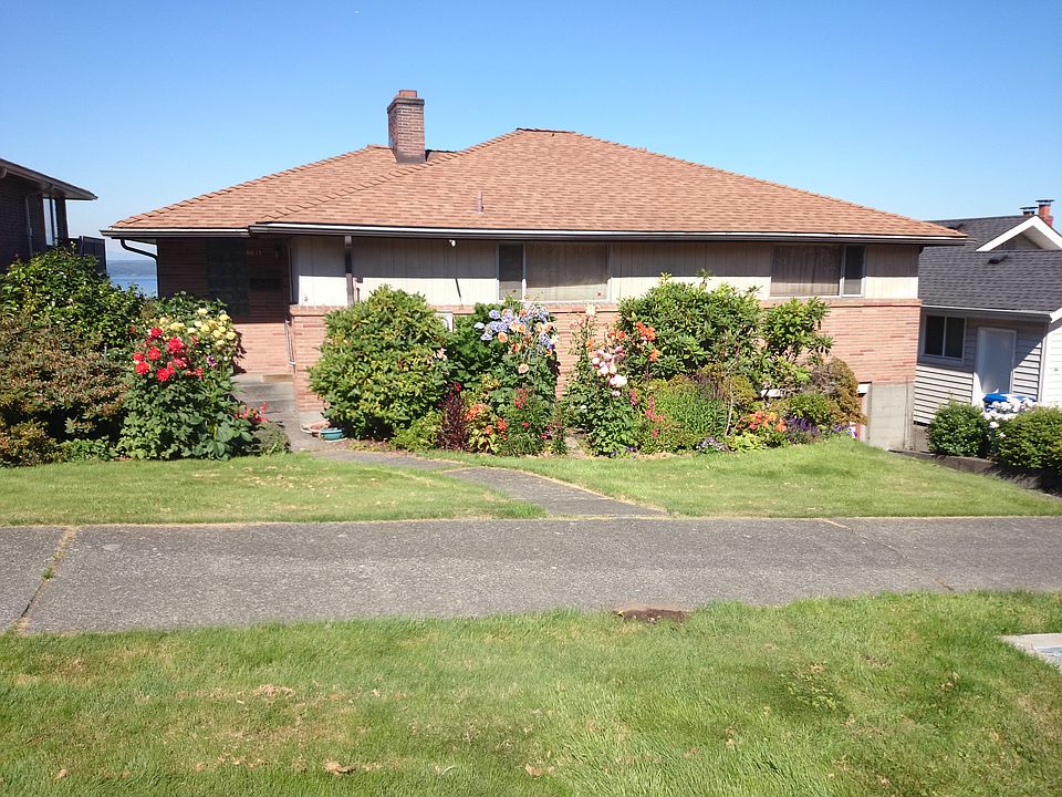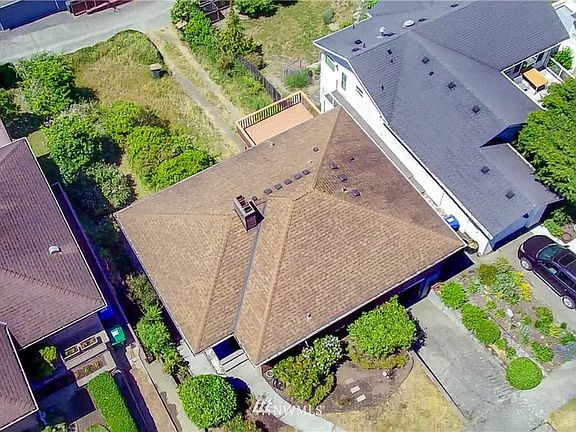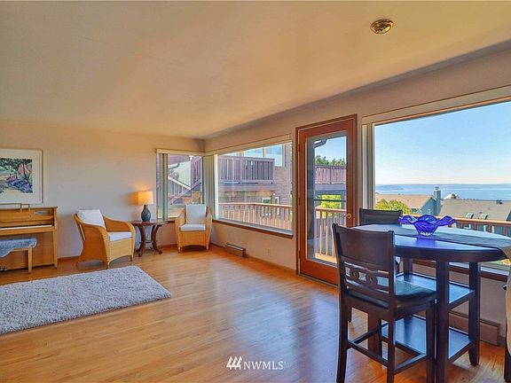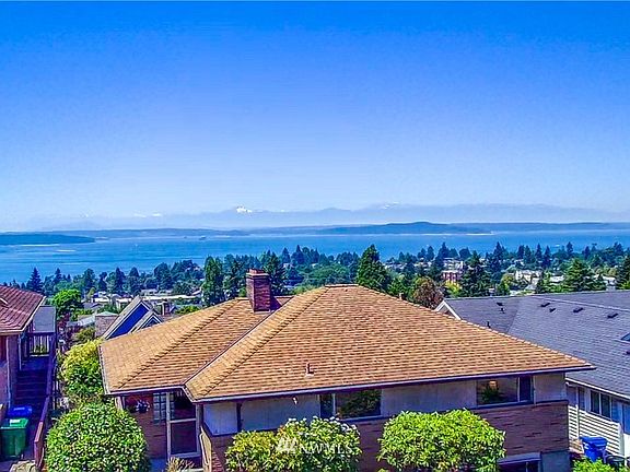 VIEW VIEW VIEW. Sweeping sound and mountain views from his solid-built brick and cedar home. The main floor features an open living and dining room with a door out to the large entertaining view deck. Galley style kitchen, full bathroom, 2 large bedrooms, wood-burning fireplace, and recently uncovered beautiful hardwood floors. The lower level has 2 view bedrooms, one full bathroom, and a large rec room with wood burning fireplace, a laundry area with extra storage. One car attached garage with access from the basement. Don't miss the second garage entrance is off the alley. This fabulous View Home is waiting for your new ideas and updates.