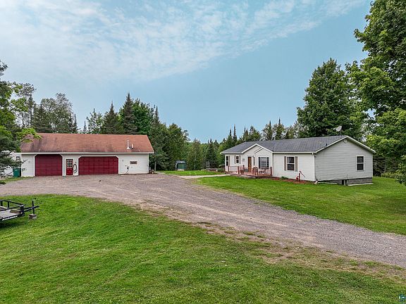 Privately located home on over 11 acres near area lakes. The large garage features a kitchen and bathroom as well as a third stall great for any mechanic or auto-body worker. Just minutes to Duluth and one level living. Septic is compliant.
