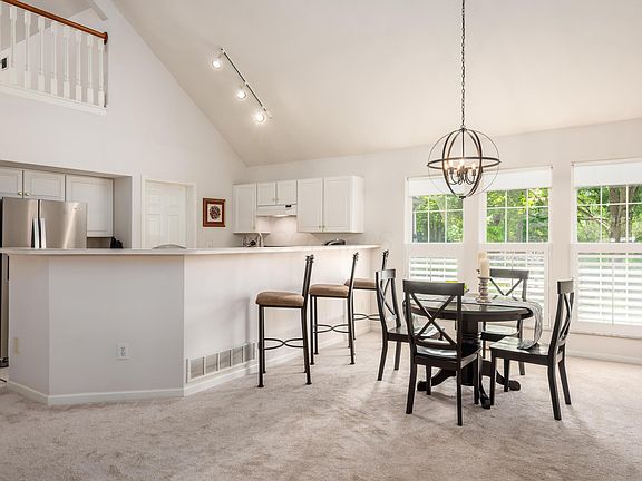 Looking for a ranch condo in a great location? immaculate condo with open floor plan, vaulted ceilings, gas fireplace! Kitchen w/ breakfast bar leads to dining space and great room featuring NEW carpet,, NEW black wrought iron orb chandelier, and lovely plantation shutters! GR opens to brick paver patio surrounded by white picket fence! Primary bedroom on first floor can easily handle a king-sized bed and opens to private en suite bathroom w/double sinks, large whirlpool tub, private lavatory, huge walk-in closet and NEW luxury vinyl flooring! Primary bedroom also boasts custom wallpaper, plantation shutters opening to small balcony. Secondary bedroom on first floor features neutral decor & roomy double closet! NEW luxury vinyl flooring in hall bathroom w/ tub/shower combo! Upstairs find large loft with skylights-this space could easily be converted to 3rd bedroom! Lower level awaits your finishes,-framed out and also has plumbing rough-in for a full bathroom! spacious 2-car sideload garage w/NEW garage door! Pretty view of pond/fountain! See this great condo today! Shows very well!