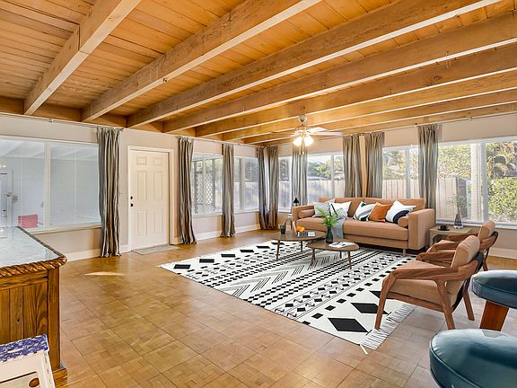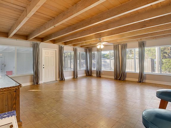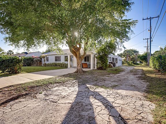 Distinctive CBS 1952 period home in the Eastern section of West Palm Beach and near I95. The owner customized the home to expand the interior living space to 5 bedrooms. Notable are the solid hardwood beamed ceilings in the great room area of the home. Throughout the decades the original owner expanded the footprint and square footage to accommodate his residential needs. The family estate has meticulously maintained the property since 2013 to the present. Of note are the charming wood parquet flooring and Terrazzo floors evoking the glamour of the 1950's This CBS constructed home is further modernized with solid wood beam ceilings, updated kitchen with granite counters & contemporary stainless appliances within the great room proximity. All windows are storm rated impact glass The kitchen has a spacious U-shaped counter which is excellentfor casual dining or as a U Shaped bar. Wood cabinets and granite counters and stainless steel appliances enhance the contemporary living style. The home has recently been painted both inside and out. Bathrooms have also been upgraded as well as exterior renovation to a flat roof section of the home. The property offers a detached 2-car garage which can house your vehicles or it can be used for additional storage, or as a hobby room, as a home theatre, or convert to a new master bedroom suite. The rear cement patio yard is paved and completely fenced for privacy and security as well as offers space for a pool. Irrigation of the landscape is by well water, saving the owner the cost of a municipal supply.