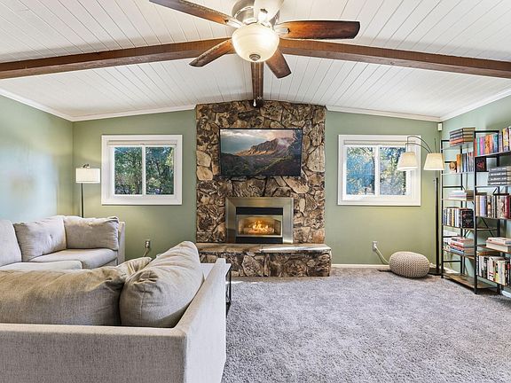 Amazing home conveniently located near all shops, entertainment and parks. Incredible vaulted ceilings with wood beams makes this 1 level home feel so spacious and warm. Enjoy cozy days sitting next to the stone fireplace in the family room with adjoining bar perfect for entertaining or watching the game. The