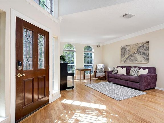 LARGE CORNER LOT! PERFECT FLOORPLAN for everyday living and entertaining! Home features include multiple living areas,oversized gameroom with desk nook,hardwood floors, oaring/vaulted ceilings and an abundance of natural light, crown molding, Gourmet kitchen w/ double ovens,neutral designer paint, new carpet, expansive master bedroom w/built in shelving, bonus flex/sitting area and large closet! PRIVATE BACKYARD w/ mature trees, extended patio w/ pergola & large grassy area-great for playing or relaxing.