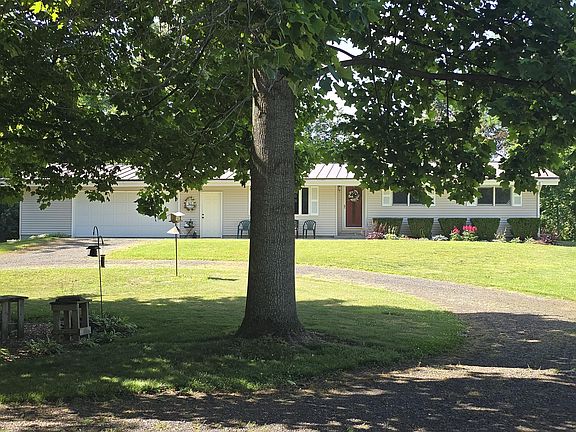 Peaceful Country Retreat on 9+ Private Acres! Impeccably maintained ranch home featuring 4 bedrooms, 3 bathrooms, oversized 2-car garage & pole building. Main floor offers 3 bedrooms, 1.5 baths, living room filled with natural light & eat-in kitchen with oak cabinets, granite countertops, pantry, dishwasher & mudroom access. The basement includes a 4th bedroom, family room, laundry area with sink, & a half bath that could easily accommodate a shower. There's also lots of storage & a walkout door for bringing in firewood. Comfort & efficiency are top priorities with the home heated by propane or wood, cooled with central air, & equipped with a metal roof (2010), & new well in 2024. Outdoors, you'll find a garden area & back deck perfect for relaxing & watching the abundant wildlife-deer, birds and fox are frequent visitors. If you're seeking space, privacy & move-in-ready country living with modern comforts, this property is the perfect fit!