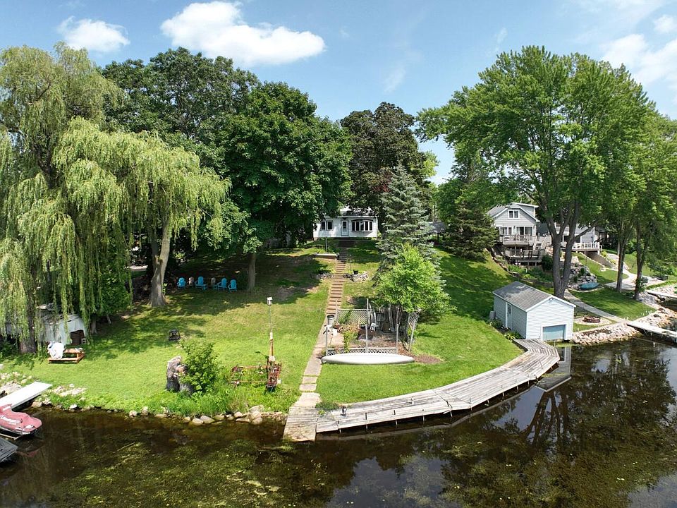Opportunity awaits with this unique waterfront property that has been loved for over 50 yrs & is ready for a new family & vision 99+ ft of frontage on the Fox River & short boat ride to Tichigan, get ready to enjoy all the water has to offer! Home was used as a duplex but can be easily converted back to SF. There are 2 main flr BR's/1 full BA, a Lg LR w/ a view of the water & an eat in kitchen w/ granite. Upstairs also has 2 BR's, a LR & add'l kitchen and full BA. The 3+ car gar will fit all the toys you want & tons of add parking for guests. The dbl lot is expansive & offers a chance to bring your ideas to life. There is also a sm 1BR/1BA studio cottage could be a bunkhouse, guesthouse. Stairs will lead you to the water where there is also a boathouse & pier. This one deserves a look!