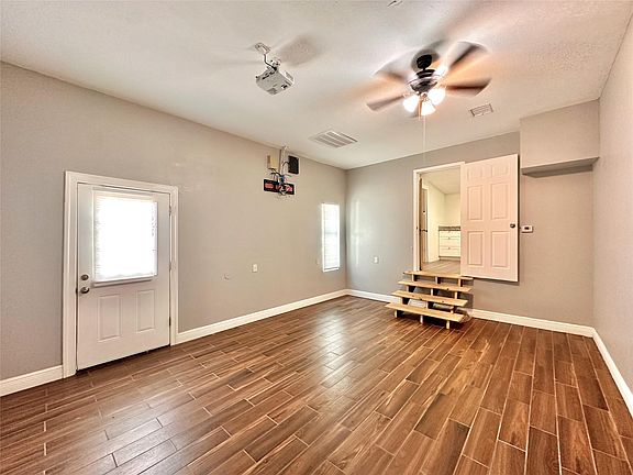 Please Note: Only the front portion of the house is available for rent. This private unit is set up as a one-bedroom apartment and features a spacious living room, a large bedroom, a full kitchen, and a full bathroom. The interior includes wood-look tile flooring throughout, granite countertops, and soft-close cabinets and vanities in both the kitchen and bathroom. A refrigerator is included. Ample parking spaces are shared with the tenants in the main house. Quiet neighborhood. Zone to good Fort Bend ISD schools. Utilities included in rent: electricity, water, and trash pickup.