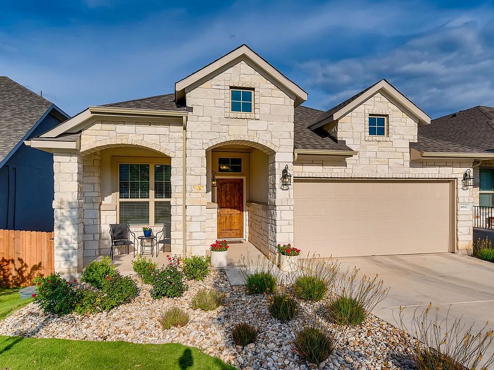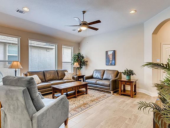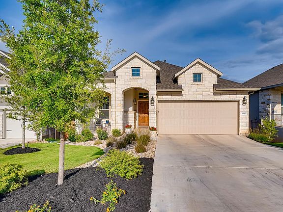 Move-In Ready, one-story home in Sweetwater. Lot backs to greenbelt and private gate gives owner access to seemingly endless trails and surrounding natural areas. Great for a buyer looking to enjoy peaceful hill country views and the amenities of an active homeowners association. Plan boasts large kitchen counter and formal dining room, a dream for a home chef! Home office in back of the house looks directly into the greenbelt space, perfect for telecommuting!