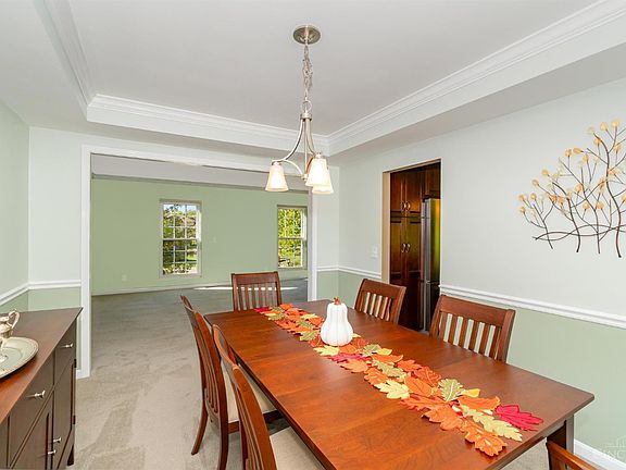 The space you need on the lot you want! Well-maintained brick transitional offering formal living and dining rooms, eat-in kitchen with stainless appliances/soft-close cherry cabinets/quartz countertops, light-filled family room with brick fireplace, vaulted primary suite with updated attached bath + walk-in closet, convenient 1st floor laundry, and finished lower level rec space. Ceiling fans in all bedrooms. Newer furnace/windows. Plus an oversized 2-car attached garage and expansive patio overlooking a picturesque, park-like yard. All on a cul-de-sac street in a quiet community (with no HOA!) close to shopping/dining/expressways!