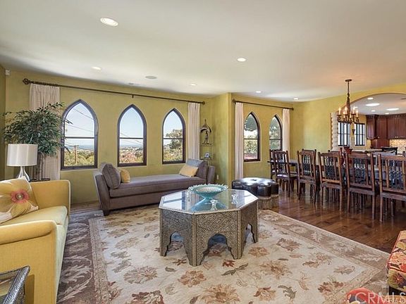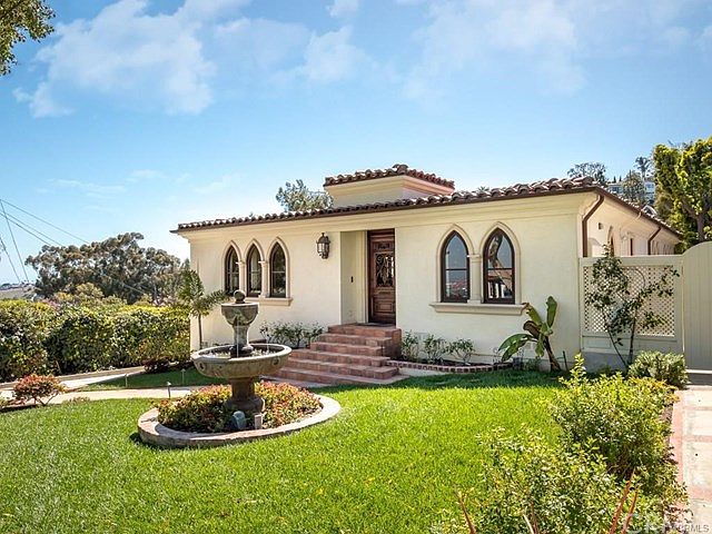This unique and newly custom built home is situated perfectly to take advantage of lovely and unexpected views of the canyon, the ocean, the harbor, the coastline, horizon and city lights. Walk across the hand-distressed solid oak floor to enter the kitchen, which is a chef's haven with upgraded professional stainless steel appliances, three ovens, a warming drawer, dishwasher, and two trash compactors.The Sub Zero fridge is the top of its class with more storage depth of any built-in. Walk through the barreled hallway with custom French chandeliers to enter the master retreat through the 100-year-old hand-carved door imported from Rajasthan and truly be taken to a land far away. The hand-applied custom Venetian plastered walls are only surpassed by the intricate ceiling relief detail. The master sitting area balcony opens to the most peaceful and serene songs of the canyon. The master closet is fit for a queen with custom solid wood cabinetry and glass enclosures. The master bath, with floor-to-ceiling imported Italian handmade tile, is ready your soak in the tub while watching the cruise ships go by or close your eyes to the sound of the birds singing in the trees. The downstairs built-in bar and grand room are waiting for your family gathering and the backyard with its grandfathered terraces are truly a lost old-world charm. The icing on the cake is the full solar system and air conditioning. With all this thought and attention to detail, you'll never want to leave home.