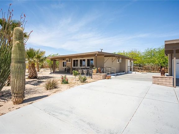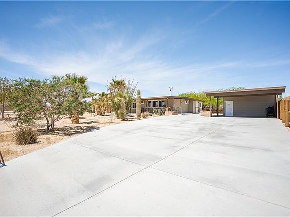 Welcome to your private desert escape! Nestled on 5 sprawling acres in the heart of Joshua Tree, this beautifully upgraded 2-bedroom, 1-bath home offers over 1,400 sqft of spacious, open-concept living. The property blends rustic charm with modern comfort, featuring stylish tile flooring throughout, upgraded tile countertops in both the kitchen and bathroom, and all appliances included for a truly move-in-ready experience. One of the bedrooms is detached—ideal as a guest suite, home office, or creative studio. The home also includes a carport, and approximately 1 acre is fully fenced for added privacy and security. Outside, you’ll find mature trees, beautiful desert landscaping, and panoramic skies that stretch for miles. This unique property can be sold partially furnished upon request, making it even easier to begin your desert lifestyle. Whether you’re seeking a peaceful retreat, a primary residence, or a vacation rental opportunity, this desert oasis is ready for you to call it home.
