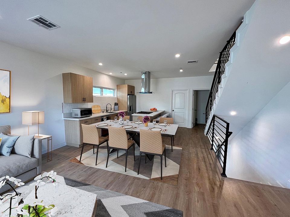 Presenting your new home - a sleek, beautifully-designed new-construction fourplex that is made up of two standalone 3-story townhome style duplexes. Never lived in before; luxurious units with new appliances, open floor plans, and a modern design. Located 4 minutes from NOHO West - NOHO West is a long-awaited retail and entertainment destination in the heart of North Hollywood. This all-new Community Plaza will bring the brands and experiences you love close to home and will offer a place to celebrate local artistry and color.