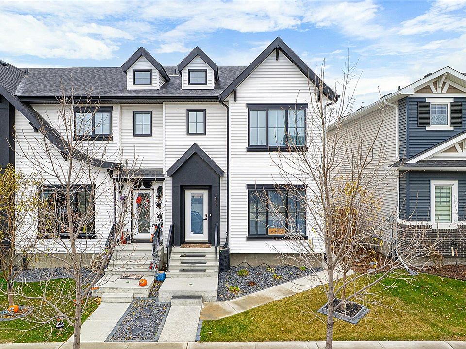 Stunning from the start! This beautiful END UNIT townhome with NO CONDO FEES is move in ready and awaits your family. Striking from the start, this curb appeal welcomes you into the 1460.21 square ft two storey beginning with the open concept main floor. This home is complete with vinyl plank floors (even upstairs!), tons of windows, and a perfectly appointed kitchen with quartz countertops and sleek cabinets to the ceiling too. The main floor also features a 2 pc bath and access to your fenced back yard with deck, lower patio pad, and of course the double garage. Upstairs is home to the main bathroom and 3 bedrooms including the primary with walk in closet, ensuite, and big windows. Located in a fabulous location near schools, parks, easy Highway 2 access, and all Beaumont has to offer.. this one is a winner!