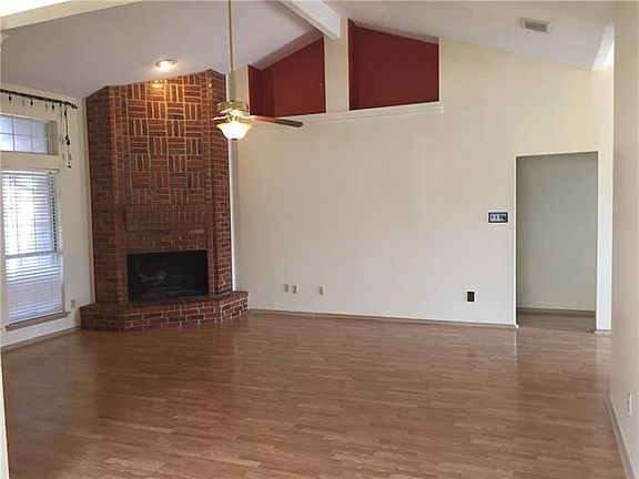 Nice floor plan, huge living area has brick gas fireplace, split bedrooms and kitchen is separated at the back, Laminate floor in living area and dining area. c-tile floor at kitchen has tiled backsplash with SS gas range, island. Great neighborhood in Rowlett with Garland ISD. Close to Firewheel shopping mall, restaurants and church a few minutes to George bush and Hwy 78.