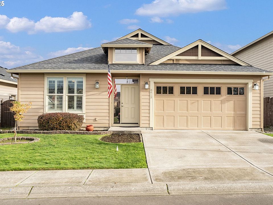 Spacious single-level 3 bedroom 2 full bath home with a 2-car garage situated on a flat, level, easily accessible street in the heart of Vancouver! Enjoy an open floor plan with high ceilings, a beautifully upgraded kitchen featuring quartz counters, quartz island, gas stove, pantry, and lots of storage. Wood floors extend through the living room and dining room, complemented by built-in surround sound and a freestanding entertainment system included with the home. The primary suite offers a walk-in closet, dual vanity, jetted tub, and walk-in shower. Step outside to a low-maintenance backyard with a covered patio, perfect for year-round enjoyment. Assumable 2.25% mortgage interest rate! Don’t wait, schedule your private tour TODAY!