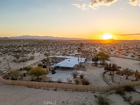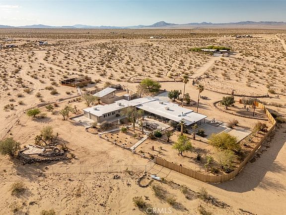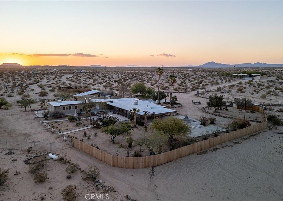Welcome to 66136 Mars Dr, an unparalleled generational gem located in the serene 'Copper Mountain Mesa' area of Joshua Tree, offering a deluxe package that includes two spacious, beautifully maintained homes sprawling over 25 majestic acres (5 acres of house property, 20 adjacent acres). The main house features two grand bedrooms with two bathrooms, one appointed with a relaxing jacuzzi tub, and a walk-in shower. The companion house offers three complete bedrooms, two bathrooms, and a bonus or family room equipped with a walk-in closet that can also serve as an extra bedroom, giving it a total of 5 complete bedrooms and 4 bathrooms. For nature lovers and admirers, the property harbors established Joshua trees, mesquite trees, and an ancient saguaro cactus over a hundred years old, a testimonial monument on the landscape. The property features historic touches such as its remarkable walls, built using rocks hauled meticulously from copper mines over the last 55 years by the hands of the original owner's family. The parcel comes with a paid water meter, with an additional 10-acre lot to the south also primed and ready with a service-ready water meter. Relish the peace and tranquility as you watch the sunrise, sunset, and shimmering night stars, and take in the picturesque landscape views from the viewing tower. Indulge in the love and history that emanates from the very walls of this home, as this property promises a life away from tourist traffic and light pollution while being conveniently close to town services, promising a delightful experience of living amidst the natural flora and fauna of the lauded High Desert. The second smaller home was built without permits many years ago, but we want to be fully transparent.