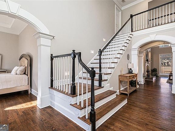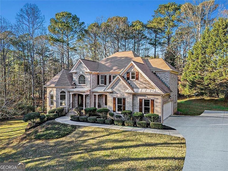 Welcome to your ideal retreat in the heart of Flowery Branch, Georgia, just minutes from Lake Lanier, popular marinas, parks, golf courses, and the Atlanta Falcons Training Camp. Whether you're searching for a primary residence, vacation or summer home, corporate housing option, mid-term rental opportunity, or multi-generational living solution, this spacious and versatile estate delivers on comfort, flexibility, and location. With a recent price improvement, the opportunity to own in one of Flowery Branch's most desirable lake-proximate communities is even more compelling. Situated on 1.22 private acres in an established swim and tennis community with low annual HOA dues, this three-sided brick home offers over 5,000 square feet of well-designed living space across three finished levels. Inside, you're greeted by a grand two-story foyer, bright and open living spaces, and a traditional white kitchen with custom cabinetry, new appliances, walk-in pantry, and center island-perfect for everyday living and entertaining. The main-level primary suite offers a peaceful retreat with a cozy fireplace, private balcony with seasonal views of Lake Lanier, a spa-like bath featuring dual vanities, a soaking tub, glass-enclosed shower, and a spacious walk-in closet. Upstairs includes a large ensuite bedroom, two additional bedrooms with private vanities, and a flexible bonus room ideal for a home office, guest suite, or playroom. The fully finished terrace level adds valuable versatility, featuring a private entrance, industrial-style kitchen, two bedrooms, full bath, two large living areas, media or flex space, and ample storage-ideal for hosting extended family, guests, or generating rental income. Outdoor living includes multiple decks and patios with wooded privacy and potential for lake views depending on the season. The expansive backyard offers room to add a pool, garden, or outdoor kitchen, creating the perfect space for recreation and relaxation. The home is ideally located near multiple Lake Lanier access points, including Van Pugh Park just two minutes away off Gaines Ferry Road, Burton Mill Park four minutes away via Yacht Club Road, and the University Yacht Club, a private boating club, also just four minutes away. Additional nearby access options include Downtown Flowery Branch Marina, Aqualand Marina, Big Creek Boat Ramp, and Lanier Harbor Marina in the City of Buford. Just five minutes from I-985, this home offers convenient access to Historic Downtown Flowery Branch, Stonebridge Village, Lanier Islands Legacy Golf Course, and top-rated Hall County schools. Upscale dining, spa services, and wine tastings await just 25 minutes away at Chateau Elan Winery & Resort. Now attractively priced, this one-of-a-kind property offers exceptional value and access to the best of Flowery Branch and Lake Lanier. Schedule your private tour today!