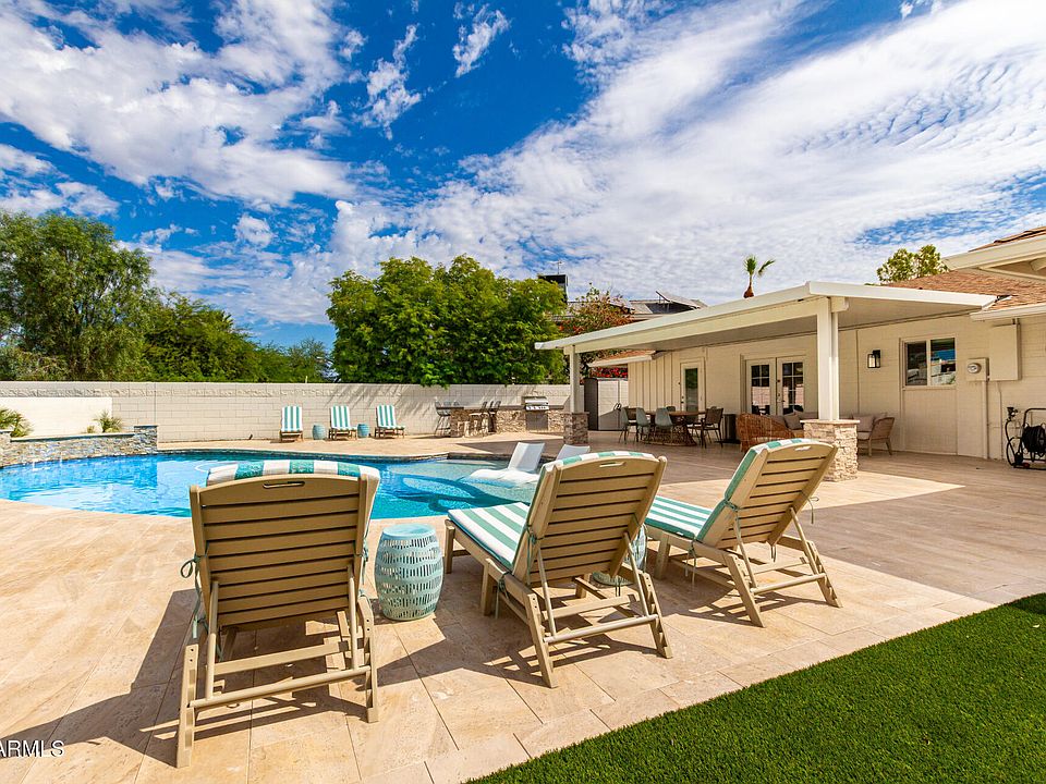 Welcome to this impeccably remodeled 4-bedroom, 2 bath home located on a quiet cul-de-sac in the coveted Park Scottsdale neighborhood. This property offers flexibility for use as a short-term rental, vacation home, or primary residence. Every detail has been thoughtfully designed, blending modern finishes with timeless comfort. The open-concept floor plan showcases a designer kitchen with upgraded appliances, custom cabinetry, and sleek quartz countertops creating a space that radiates calm and sophistication. Step outside to your private backyard retreat, where thoughtful landscaping with natural stone surrounds a large heated pool, 3 hole putting green, natural gas fire pit, and a dedicated corn hole/bocce court. Entertain with ease at the built-in natural gas gourmet BBQ and dining bar with seating for 6. The private outdoor shower crafted from natural stone completes this luxurious resort experience. All of this, just minutes from world class golf, and Old Town Scottsdale's dining, shopping, and entertainment. This home combines luxury, location, and lifestyle in one exceptional package with most of all privacy. Just a few steps from the scenic AZ Canal Trail, perfect for walking, cycling, or running.