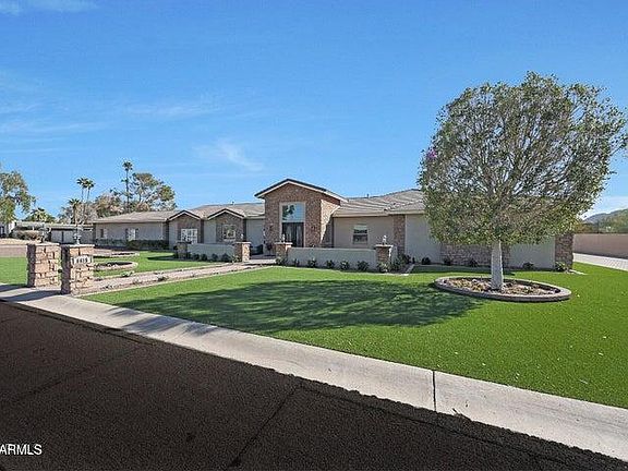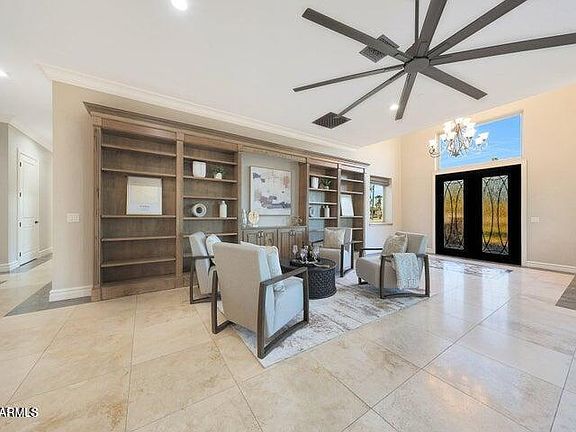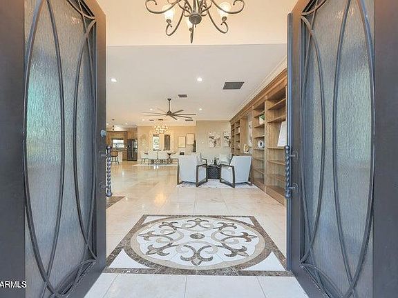 This custom-built estate redefines luxury central Scottsdale living and is ready for you to claim it as your own! Upon arrival, you are welcomed into an expansive great room and chef's kitchen, where tall ceilings and oversized sound-deadening windows create a serene and inviting ambiance. The warmth of a fireplace, custom-built bookcases, and extensive travertine finishes set the tone for a comfortable lifestyle. Rich knotty maple woodwork adds timeless charm, complementing a striking white island adorned with Rainforest Brown marble, a farmhouse sink, and dark chocolate brown solid travertine countertops. Professional-grade appliances, designer lighting, and sleek eight-blade fans complete the exquisite aesthetic. Each bedroom is a private en-suite retreat, ensuring unparalleled. comfort and convenience. The home also boasts a versatile second kitchen - an attached, fully-equipped casita, catering to diverse lifestyle needs. Nearest the second kitchen is a second living room, along with 2 bedrooms and 2 bathrooms, creating an excellent option for rental income by living in the main home while renting out this 2 bedroom/2 bathroom guest house-style wing. While they are currently connected, they can be easily separated.