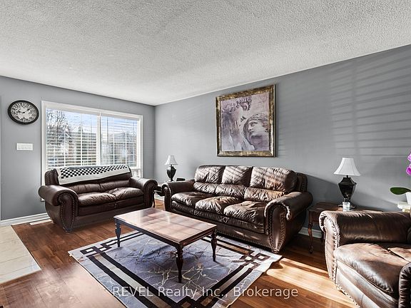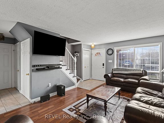 Spacious 3+1 bedroom, 2.5 bathroom semi-detached home located in the heart of Niagara Falls. With over 1600 square feet of finished living space above grade, the main floor offers a bright and open living, dining and kitchen area, a convenient two-piece bathroom, inside access to the garage, and a refreshed kitchen featuring quartz countertops, a new tile backsplash, and plenty of natural light from the sliding glass doors that lead to a new back deck. The fully fenced backyard offers privacy with no rear neighbours and backs onto mature trees. Thanks to the slight slope of the yard, the lower-level bedroom enjoys large windows. Downstairs also includes a rec room thats perfect for a playroom, home gym, or office, along with a spa-like bathroom with a walk-in shower. Located in Balmoral Court, a quiet cul-de-sac on the west end of Valley Way, this home is close to highway access and just a short drive to restaurants, schools, grocery stores, and all the nightlife Niagara Falls has to offer. Recent updates include: both staircases refinished (November 2025), new laminate and vinyl plank flooring throughout the lower level (November 2025), quartz countertops (2024), tile backsplash (2025), back deck (2024), hot water tank (2023), air conditioning (2021), washer and dryer (2022), and the lower-level bathroom (2018).
