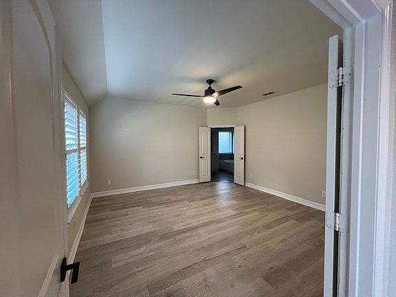 This wonderful open-layout 2015 property has a split bedroom layout with the master located in the back of the property (2 closets), two additional bedrooms with a flex space in the front which can either be used for formal dining, sitting, etc. It also contains an office nook. Upgrades include new modern flooring and top-of-the line fridge/dishwasher installed in the last few years as well as plantation shutters that allow blackout privacy. Within the garage, there is a NEMA 14-50 outlet for EV charging. A back porch gives room for gathering and/or plants with a manageable-sized backyard. Additionally, the property is located in a safe, coveted neighborhood with a nice walking trail through the greenbelt behind the neighborhood. You'll also be 1mi away from Kroger, close access to President George Bush, and 10min from highway 75.