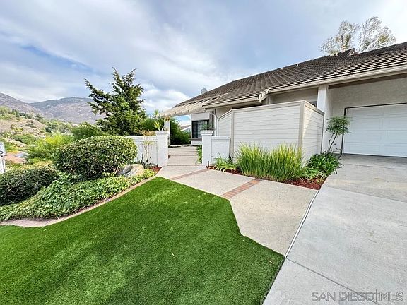 Fixer! Stylish corner-lot San Carlos home with scenic mountain views, dramatic vaulted ceilings and flexible living spaces. Main-level primary suite, large family room with fireplace, separate dining room and bright kitchen open to an expansive, low-maintenance yard with synthetic turf and covered patio. Central heat/AC, concrete roof, oversized driveway, RV/boat parking and private, fenced backyard close to Lake Murray, Cowles Mountain hiking, shops and dining, ideal for entertaining. Perched above the street on a wide corner lot, this San Carlos home offers space, privacy and potential. Enjoy mountain and neighborhood views, vaulted ceilings, recessed lighting and a main-level bedroom suite with double-sink bath. Large family room with gas fireplace opens to the backyard, while a separate dining room sits off the kitchen. Outside features lush landscaping, synthetic grass, covered patio and fully fenced yard. Oversized driveway, two-car garage with abundant storage and side gate with concrete pad provide room for RV, boat, toys or extra cars. Central heat and A/C, concrete tile roof and low-maintenance hardscape make this an easy-care primary residence or long-term investment, just minutes to Lake Murray, Mission Trails, local schools and freeways.