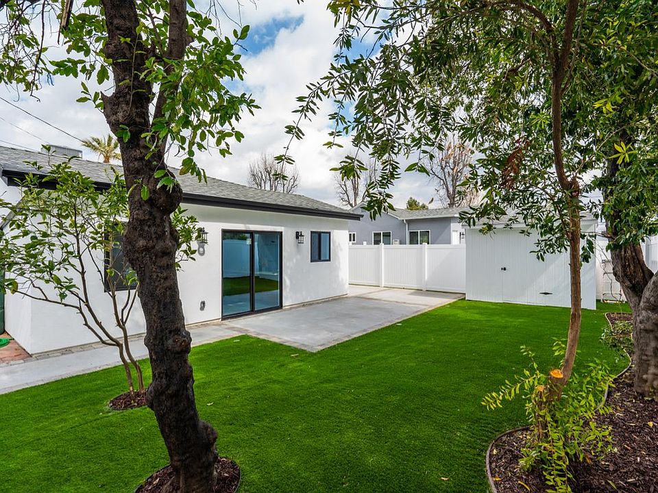 Spectacular new construction, Encino-adjacent, spacious 2 bedroom/1 bathroom with vaulted ceiling, open floor plan, concrete floors, 2-sink bathroom, in-unit washer/dryer, walk-in closet; extensive yard with trees that is perfect for relaxing, rejuvenating, and entertaining. All appliances including washer/dryer and refrigerator are provided. Property has gated onsite parking and a large storage shed. The home is a private back house in a quiet neighborhood conveniently located to the 405 and 101 freeways. This home truly has all the desired features and amenities. This is a back house. The back house address is 6615 Yarmouth Ave. The front house address is 6613 Yarmouth Ave. No smoking/vaping of any substance is allowed on the premise-- inside and outside. Owner pays for water and bi-weekly gardening service. Tenant is responsible for all other utilities-- including Internet, electricity, gas, and trash. No smoking/vaping of any substance is allowed on the premise-- inside and outside. Small pets are permitted on a case-by-case basis. Tenant must have a FICO score of 720+.