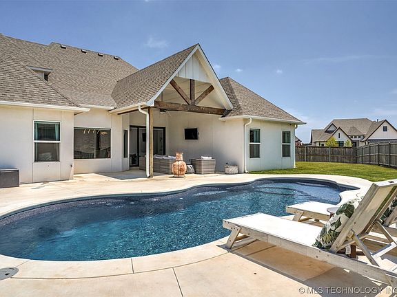Custom built 2 year old home in Broken Arrow. 4 beds.3.4 bath 3 car garage in Cul-de-sac. Office, gameroom. 3 beds down & 1 bed up with gameroom. Lots of hardwoods. Quartz kitchen countertops. Large lot with Saltwater inground pool w/heater & tanning ledge. 15x34, 6 feet deep. $5K pool cover stays. Most window shades are remote control.