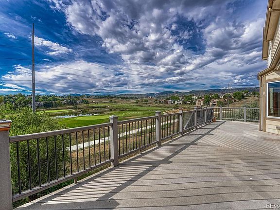 The moment you open the front door you are captivated by water, golf course, and spectacular mountain views! The main floor offers a gourmet eat in kitchen that is a chef's dream, with a bar area, granite counters, wall oven, an island with a cooktop and plenty of seating! The vaulted family room with a gas log fireplace perfect for a snowy night. The composite deck invites you out to stargaze and enjoy Colorado's best sunsets. A formal living and dining room offers more space for larger get togethers. A roomy private office space to escape or work from home with no interruptions. Main floor laundry with access from the 3-car garage with its own charging station! Upstairs are four spacious bedrooms 2 share a Jack and Jill bath, 1 with its own private bathroom. The vaulted primary welcomes you with double doors, walk-in closets, and luxurious 5-piece en-suite. The finished walk out basement with a 3/4 bath, ample storage, kiddos hidden playroom, gym area along with a game/family room perfect for hosting any sports party you desire. Lastly, enjoy soaking in the hot tub on the patio while savoring all the views. Grocery, Shopping, Restaurants and Red Rocks Theatre are all close by! Easy access to the best ski slopes, camping sites and hiking trails. Isn't this why you live in Colorado?
