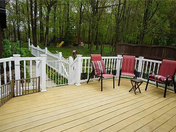 Situated on just under an acre of land is this solid all brick ranch with full finished lower level. The first floor boasts nicely finished hardwood floors, spacious dining room, generous bedrooms, and updated kitchen with custom concrete counters and hardwood cabinets. Large windows in the front illuminate the living room which is a great space for family gatherings. Home is tastefully decorated with a "pottery barn" feel. The generous dining room is great for entertaining your crowd daily or hosting gatherings. Dining room slider opens to a rear deck and maturely treed yard. The lower level has a full second kitchen with cherry cabinets and spacious living areas, wood burner, office area and plenty of storage. Home is outfitted with Anderson windows, and two fireplaces. Newer energy efficient furnace and recently added central A/C & water filtration system too! There is a two car attached garage and a separate, detached two car garage (24'x32') with attic storage. Once you're here you won't want to leave, so make your offer before someone else steals your dream.