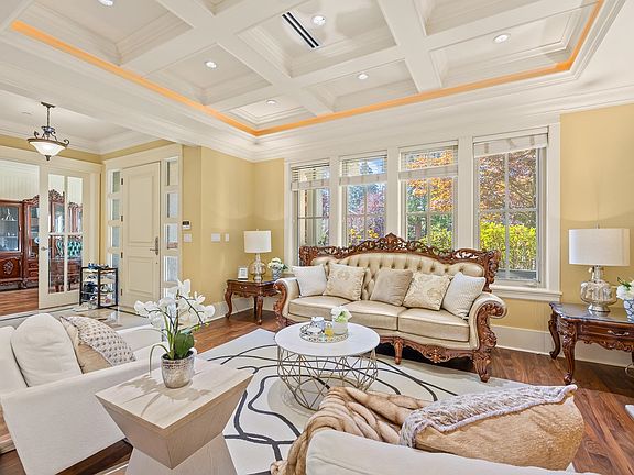 Quiet tree-lined streetWalnut hardwood floorsCustom maple cabinetryDeluxe home theatreWet barSurround sound systemSecure beautifully landscaped yard