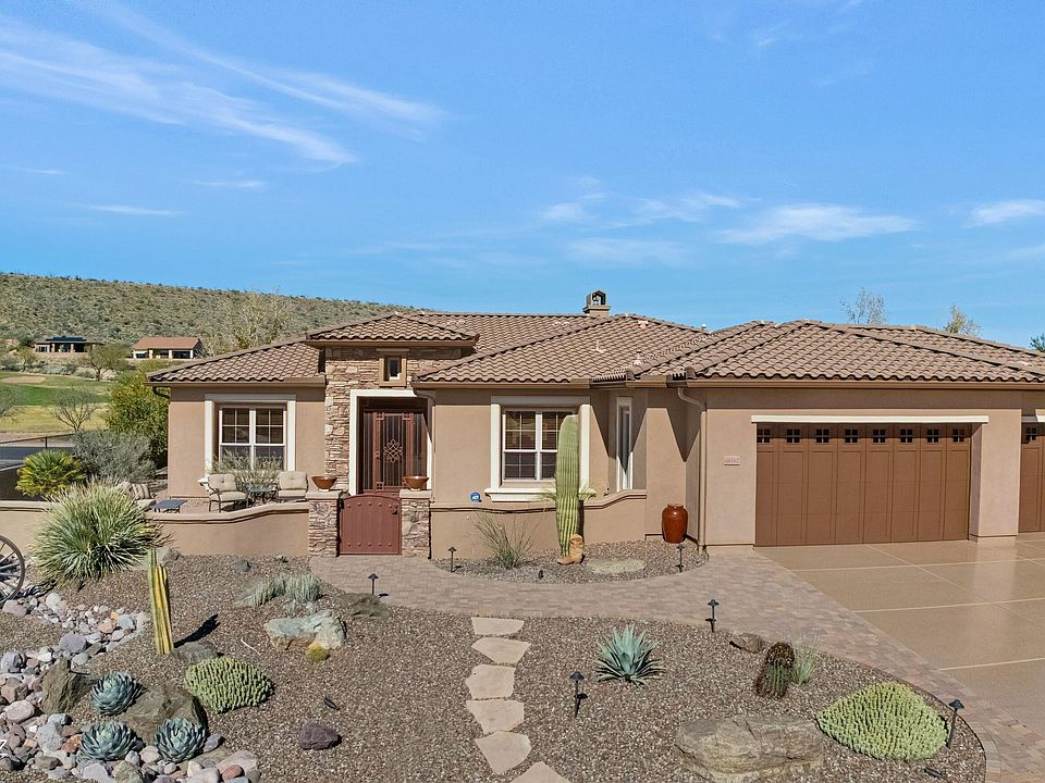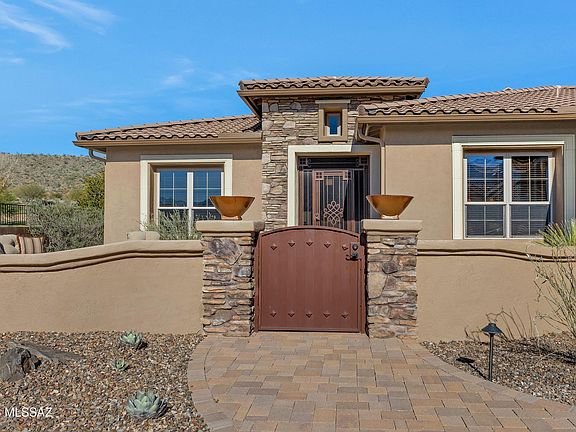 Located on corner lot in The Preserve, this 2011 Sabino offers golf course & mountain views! Great curb appeal! Paver courtyard with wrought iron entry gate leads into home. Inside, Den/Office. Great Room has stacked stone media wall with gas fireplace & sliding door to patio. Kitchen with granite counters, black appliances, gas cooktop, 42'' cabinets with slide-outs, walk-in pantry, & dining area. Owner's Suite with bay window & patio door. Bathroom has walk-in shower, soak tub & walk-in closet. Powder Room. Guest Bedroom has bay window, patio door, walk-in closet, & en-suite bathroom with shower. Laundry Room has W/D & cabinets. Extended 3 Car Garage has sink, cabinets, & epoxy flooring. Outdoor Living-screened covered patio, extended paver patio, built-in BBQ, gas firepit & gated yard!