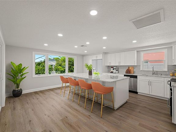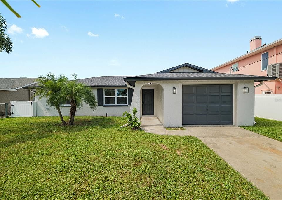 Completely renovated waterfront beauty with direct Gulf access! This stunning home has been fully transformed from top to bottom. There's nothing left to do but move in and enjoy! Step inside to discover brand-new hurricane-impact windows and doors, a new roof, and a two-year-old HVAC system for year-round comfort. Fresh insulation meets current energy codes, ensuring efficiency and peace of mind. Every inch shines with new flooring throughout, fresh interior and exterior paint, upgraded trim, and new interior doors. The gourmet kitchen is a chef's dream, featuring premium finishes and modern cabinetry. The newly renovated baths showcase stylish tile, updated fixtures, and contemporary vanities. The electrical system has been upgraded to current code, complete with new lighting throughout. A new tankless water heater rounds out the impressive list of upgrades. Out back, relax on the spacious lanai while enjoying serene water views. The deep-water canal offers direct access to The Gulf! Perfect for boaters and water sports enthusiasts alike.