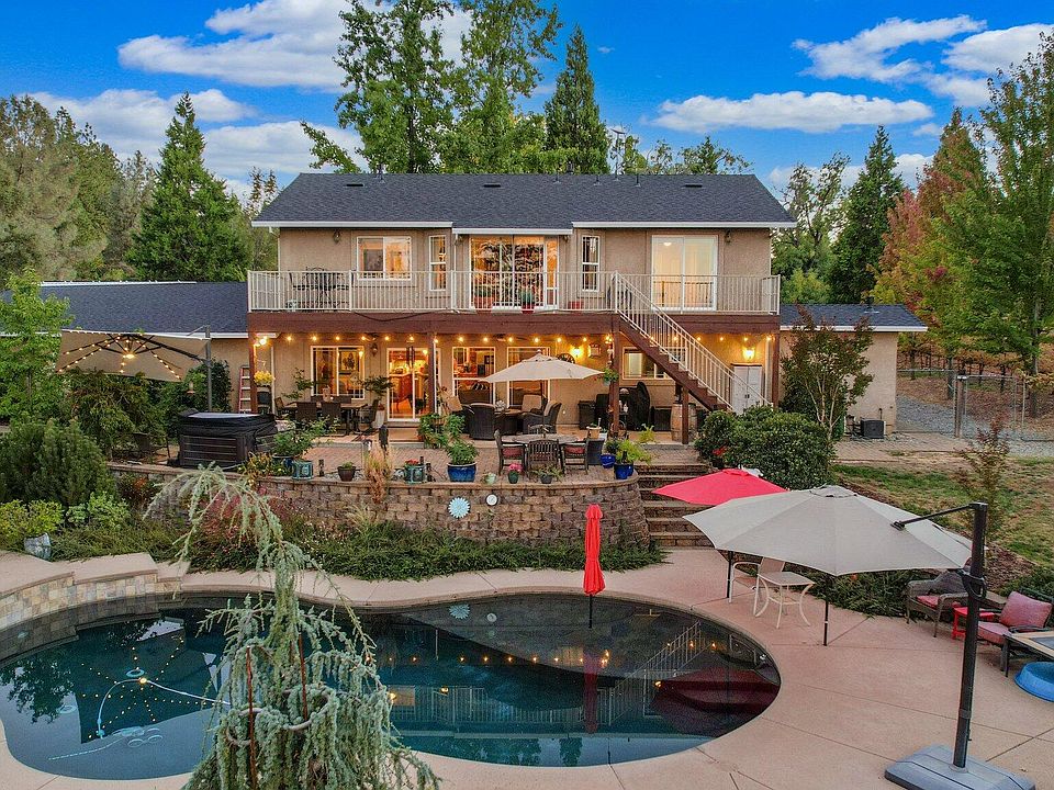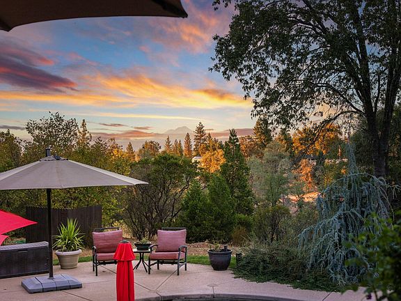 Experience a tranquil resort lifestyle in this stunning 5-acre property featuring 4 bedrooms and 3 bathrooms. Owned solar keeps monthly costs low. Revel in breathtaking million-dollar views of Mt. Shasta and spectacular sunsets from the upstairs deck and back patio. Inside, you'll find two fireplaces (in the living room & main bedroom), an office, laundry room, pantry, and a temperature-controlled wine room. This beautifully landscaped home offers an automated extensive sprinkler and drip system, a 300-vine hobby vineyard, a saltwater pool, and a fabulous outdoor entertaining area, all surrounded by a fully fenced perimeter. Additional structures include a greenhouse and shop. The property also features a 3-car garage, RV parking, and a one-year-old roof!