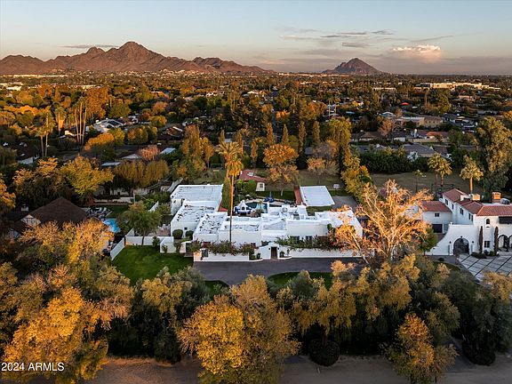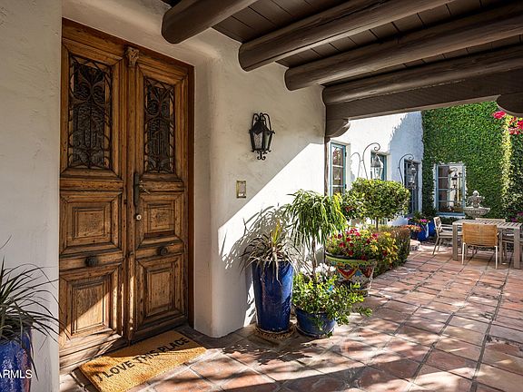 kitchen and spectacular outdoor living areas. The charming office features built-in bookcases and a fireplace. The primary suite is grand with 2 walk in closets. The expansive kitchen is the heart of the home and boasts an oversized mahogany island with seating for 7 perfect  for entertaining. See property history under document tab. The backyard and patio feel like a classic Arizona resort with a covered pool, fireplace and fully equiped outdoor kitchen.