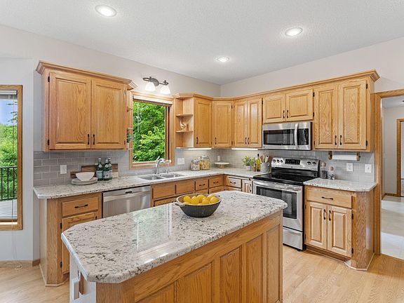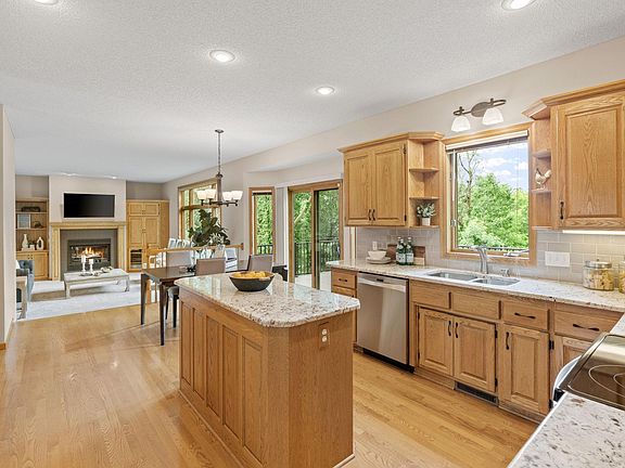 **Multiple Offers Received. Highest and best due 5:00pm Sunday, June 22nd.** This spacious and well-maintained one-owner home offers the perfect combination of comfort, flexibility, and a serene setting—featuring 6 bedrooms, 4 bathrooms, a 3-car garage, and a private 0.58 acre lot with peaceful wildlife views on a quiet cul-de-sac. The main level boasts hardwood floors and a bright, open layout. The kitchen includes stainless steel appliances, granite countertops, tile backsplash, and a center island, flowing seamlessly into both the informal dining area and the maintenance-free deck. On the main level you'll also find a formal dining room, family room wired for surround sound with gas fireplace, living room, 1/2 bath, laundry room, and the 6th bedroom—perfect for a guest room, office, or playroom. Upstairs, you’ll find four spacious bedrooms and two full baths, including the primary suite with a walk-in closet and private bath featuring dual sinks, a soaking tub, and a separate walk-in shower. The finished walkout lower level is ideal for entertaining, offering a second family room with gas fireplace and surround sound, a rec room with a wet bar, a 3/4 bath, an additional bedroom, and a large utility room with tons of storage space. Recent updates include fresh paint on the upper levels, newer carpet, and a maintenance-free deck. Neighborhood trails provide easy access to Basswood Park, Basswood Elementary and the Three Rivers trail system including Medicine Lake Regional Trail and Fish Lake Regional Park—with a swimming beach, boat launch, and dog park. Located in the Basswood Elementary, Maple Grove Middle, and Maple Grove Senior High boundaries - this home truly has it all offering space, privacy and location!
