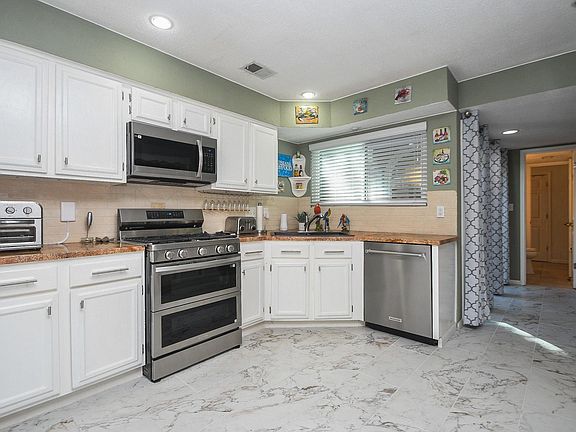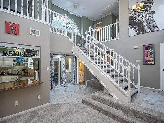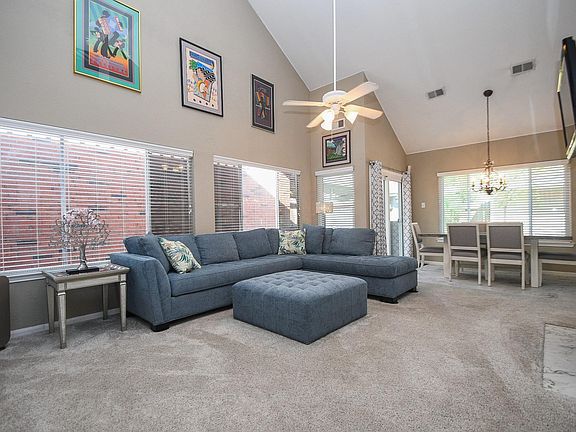 Experience upscale living in this architecturally striking patio home featuring soaring ceilings, a dramatic floating staircase, and an open-concept design that fills the home with natural light. Large private patio yard great for relaxing, gardening as well as cook outs with friends and family perfect for entertaining. The spacious master suite boasts a luxurious 2-person corner Jacuzzi tub for spa-like comfort. Recent upgrades include a new central air & heat system, high-capacity Rain Hero gutters, and many more updates. Nestled in the coveted Champion Creek neighborhood, this home offers elegance, comfort, maintenance free living and convenience in one exceptional package!