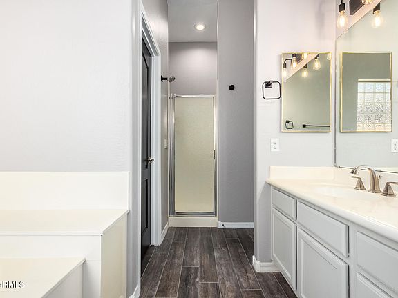 Awesome house in a prime location! Close to everything but tucked away from the hustle & bustle! This beautiful home offers a great curb appeal w/a manicured landscape & a 2-car garage. Come inside to discover gorgeous wood-look flooring, soothing palette, tall ceilings, a bright dining area, & a living room w/recessed lighting. Watch your favorite movies in the family room! Delightful kitchen showcases plenty of lovely wood cabinets, built-in appliances, a breakfast nook, & a service window w/a 2-tiered breakfast bar. Relax in the spacious main retreat that is filled w/abundant natural light, soft carpet, & an ensuite w/dual sinks & a walk-in closet. Enjoy the fantastic mountain views under the covered patio in the perfectly-sized backyard!