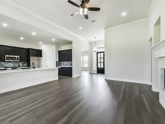This stunning 2,675 sq. ft. four-bedroom home, featuring the sought-after Austin floor plan, sits on a spacious 1.07 acre lot in the serene Winfree Bayou Estates. Surrounded by large lots and high-end custom homes, this subdivision offers the perfect blend of luxury and tranquility. Step inside and experience the light and airy atmosphere, enhanced by a spacious open floor plan and soaring ceilings—perfect for both entertaining and relaxing. Modern upgrades include Granite countertops, stainless steel appliances and stylish Vinyl Click Plank flooring, adding a touch of elegance throughout. Outside, your private retreat awaits, covered back patio offers a magical outdoor experience ideal for serene evenings. This home provides the privacy and seclusion you desire while still being conveniently close to top-rated schools and essential amenities. Don’t miss your chance to make this exceptional home yours—call today!