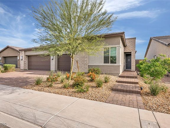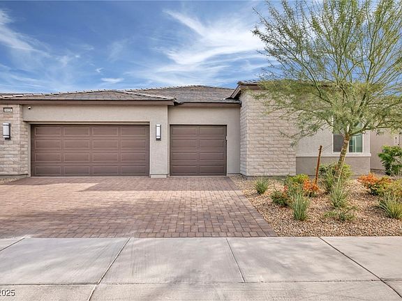 Welcome to this stunning single-story, 3-bedroom, 3-bath home with two master suites—perfect for multi-generational living or guests. Built in 2022 in a desirable gated community, it features a 3-car garage for vehicles, storage, or a workshop. The open-concept layout includes a stylish kitchen with a large island, flowing into bright living and dining areas. A versatile den can serve as a 4th bedroom, office, or playroom. Step outside to a covered patio and backyard ready for your outdoor vision. Conveniently located in North Las Vegas near the VA Hospital, shopping, dining, parks, and freeways. Modern, flexible, move-in ready—this home truly has it all.
