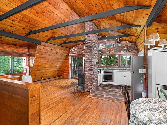 Welcome to your private escape on the serene shores of Bergen Lake, a quiet lake perfect for paddling, fishing, and soaking in nature. This beautiful 3 bedroom, 2 bath walkout cabin offers stunning views and direct access to the water. Inside, enjoy the warmth of natural wood throughout the open concept living area, accented by a striking brick chimney and cozy wood burning stove. The kitchen features modern updates while preserving the home’s rustic charm. Step outside onto the spacious deck and take in the tranquility of your lush, tree lined surroundings. The property also includes a rare gem, an original 1940s cabin complete with sauna, ready for your personal vision. Whether you restore it into a charming guest cottage or transform it into a spacious gathering spot, the possibilities are endless. Additional highlights include: Lifetime warranty windows and doors by My Home Improvement Company, Home Roof 3yrs old, Scenic and wooded setting with beautiful landscaping and outdoor gathering spaces This is a once in a lifetime opportunity to own a lake home with additional cabin this close to the water on a quiet, private lake. Schedule your private showing today and start making memories at Bergen Lake!