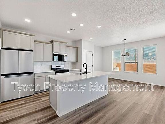 **Application Received**New Build 3 Bedroom Beauty in Rio Rancho **Backup applications can be submitted** Welcome to this stunning three-bedroom, two-bathroom home in the desirable Lomas Encantadas community, conveniently located near Paseo Del Volcan and Camino Encantadas. You'll love being close to shopping, dining, and having easy access to I-25 for a quick commute. Inside, the open floor plan is filled with natural light. The kitchen features a stainless-steel appliance package, an island, and a spacious closet pantry for all your storage needs. The kitchen looks into the living room and the dining area offers direct access to the backyard. The oversized primary suite features dual closets and an ensuite bathroom boasting double vanities and a step-in shower with a built-in bench. Two additional guest bedrooms and a full guest bath provide plenty of space. Step outside to enjoy a covered patio and take in the amazing views, making this backyard an ideal spot to relax and unwind. For a Virtual Tour Follow this link! * All Tyson PM tenants are enrolled in the Resident Benefits Package (RBP) for $51.95/month which includes liability insurance, credit building to help boost the resident's credit score with timely rent payments, up to $1M Identity Theft Protection, HVAC air filter delivery (for applicable properties), move-in concierge service making utility connection and home service setup a breeze during your move-in, our best-in-class resident rewards program, and much more! More details upon application. * *When viewing the property, please do not leave the keys outside of the lockbox.* * No Smoking Permitted in or on the Premises.* **Prior to submitting an application, please carefully review our Application Qualification Criteria & Disclosures: **Ensure all required documents are uploaded to your application. Applications are processed in the order in which they are received.** *None of our homes are advertised through us on Craigslist. If you see this property on Craigslist please be aware it is a scam.* Amenities: 2 car garage, pet policy: 2 cats or dogs (up to 40 pounds), tankless water heater