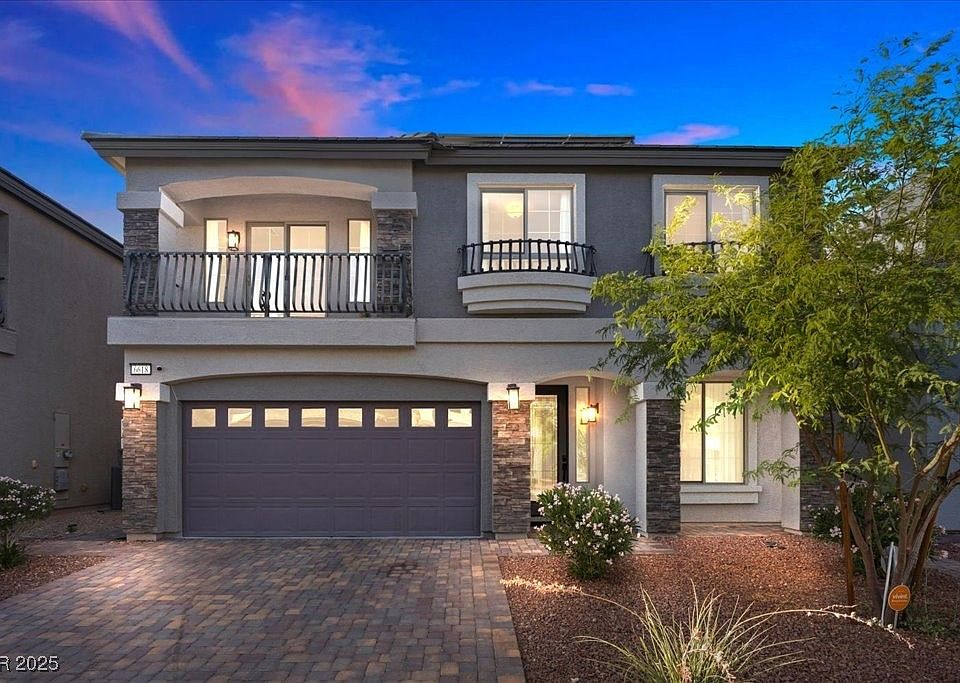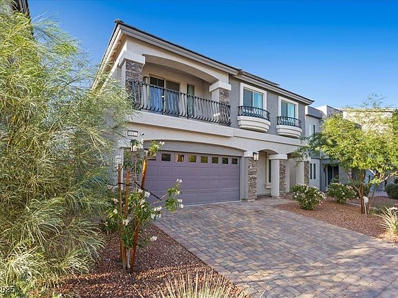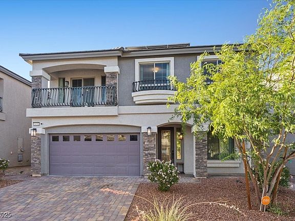 Beautiful and modern Las Vegas rental home featuring an open-concept layout with abundant natural light. Each bedroom includes a private ensuite bath. Enjoy a gourmet kitchen with quartz countertops, upgraded tile and carpet flooring, and a spacious loft with balcony access. The luxurious primary suite offers French doors, custom walk-in closet, oversized shower, and soaking tub, includes a downstairs guest suite. Solar system benefit for low power bill, Tesla charger (owned), newer washer/dryer, water softener, and filtration system. Low-maintenance backyard perfect for relaxing or entertaining. Prime location near shopping, dining, parks, and freeways. Move-in ready must see!
