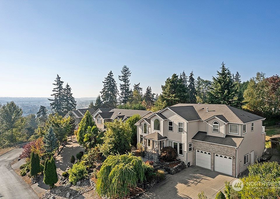 Large backyard with tons of privacy with mature landscaping. Enjoy the coveted outdoor seating area w/ your very own pizza oven. Grand entry with stunning vaulted ceiling to the second story. Right of entry offers formal dining and to the left formal living room. Kitchen features 5 burner gas range, ample storage and HUGE walk in pantry & wall/mirco oven. Upstairs offers 4 bedrooms each with attached bath. French doors to primary suite with private balcony. Enjoy the stunning Mt. views from your dbl door primary bath with huge jetted tub & dual walk in closets. Garage offers electric car charger, and extra finished flex space (great for home office for home gym). Additional parking on right side of home & AC. Close in location.